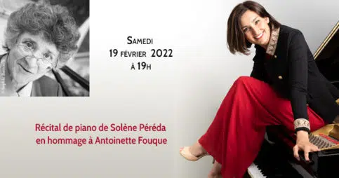 Samedi 19 février 2022 à 19h35 rue Jacob 75006 ParisSolène Péréda, sa filleule, pianiste concertiste, jouera en hommage à Antoinette Fouque qui nous a quitté·e·s le 20 février 2014.