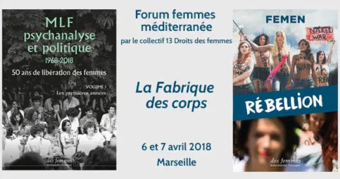vendredi 6 au samedi 7 avril 2018Cité des Associations - 93 La Canebière - Marseille6ème Salon méditerranéen des publications de femmes, organisé par le collectif 13 Droits des femmes, «La Fabrique des corps» : Lectures, tables rondes, stands d’éditeurs, expositions.
