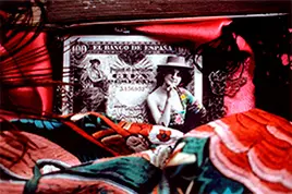 Christine Spengler, photographe-plasticienne présente ses photomontages oniriques de vierges et toreros des années 80, comme des « Ex-Votos » inspirés de son enfance madrilène.