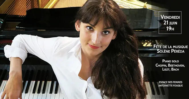 Vendredi 21 juin 2019 à 19h35 rue Jacob 75006 ParisFête de la Musique avec un concert de Solène Péréda, pianiste. Dotée de nombreux prix internationaux, Solène Péréda interprètera Chopin, Beethoven, Liszt, Bach … Les grands noms de la musique classique. (portes fermées pendant le concert)